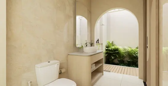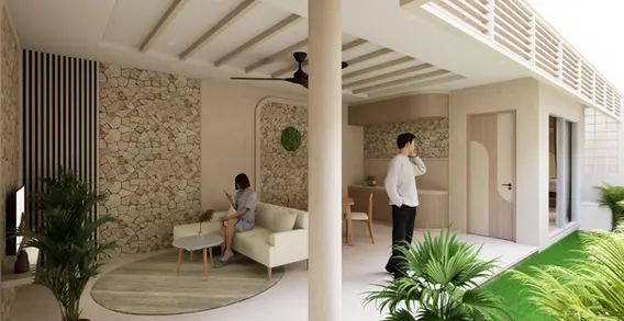 Tipe Private Garden D di The Savva Villas by Alana dimana setiap unit nya menghadirkan pemandangan langsung ke kolam renang anak, menciptakan suasana hangat yang ideal untuk berlibur keluarga.
